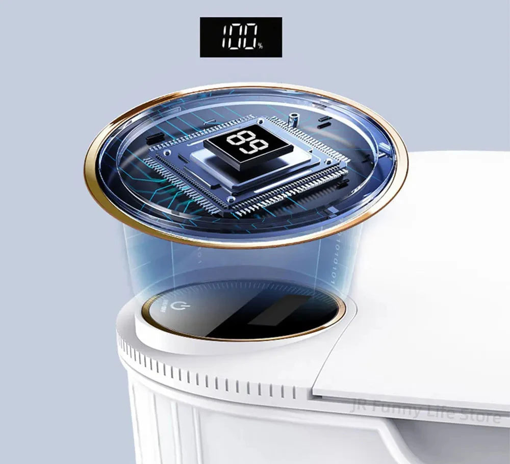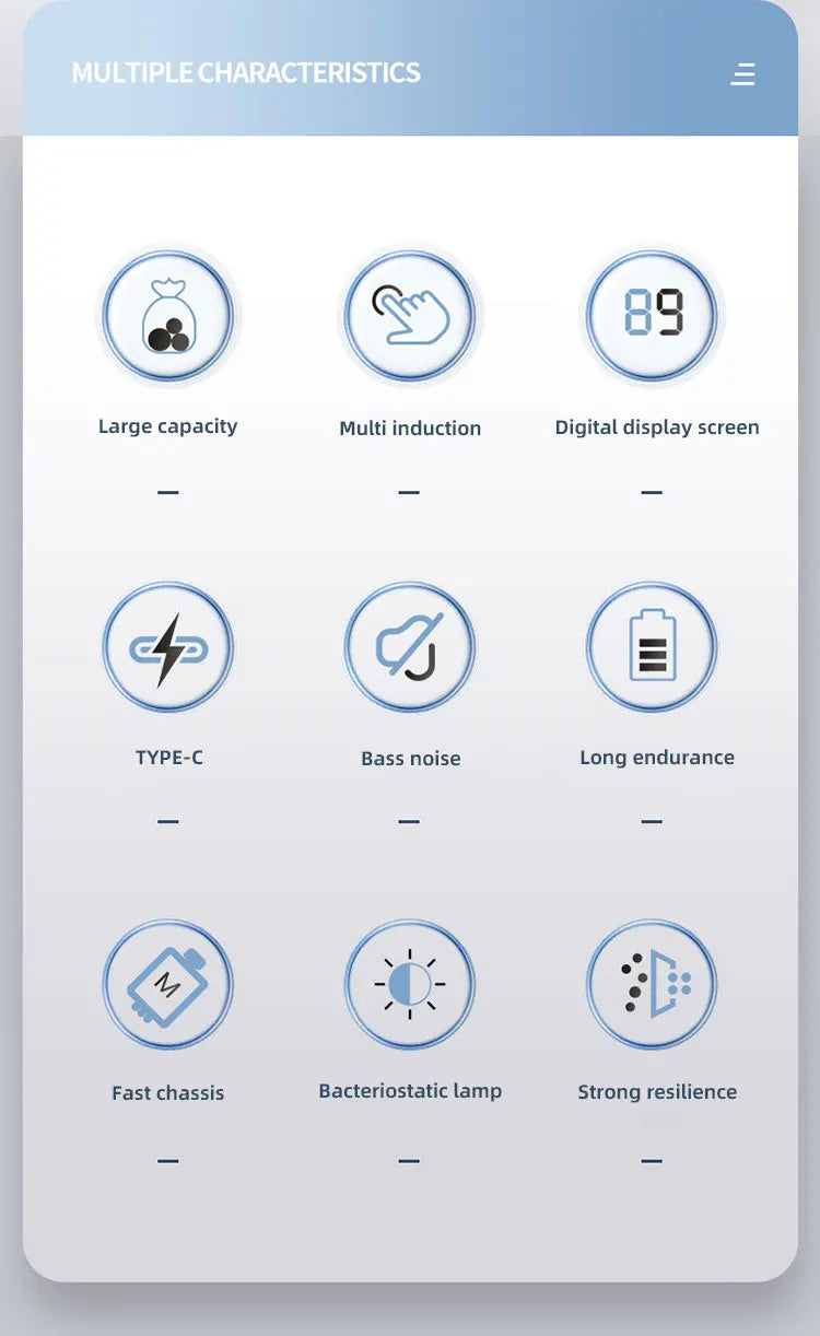 When the lid opens, an antibacterial blue lamp automatically activates.